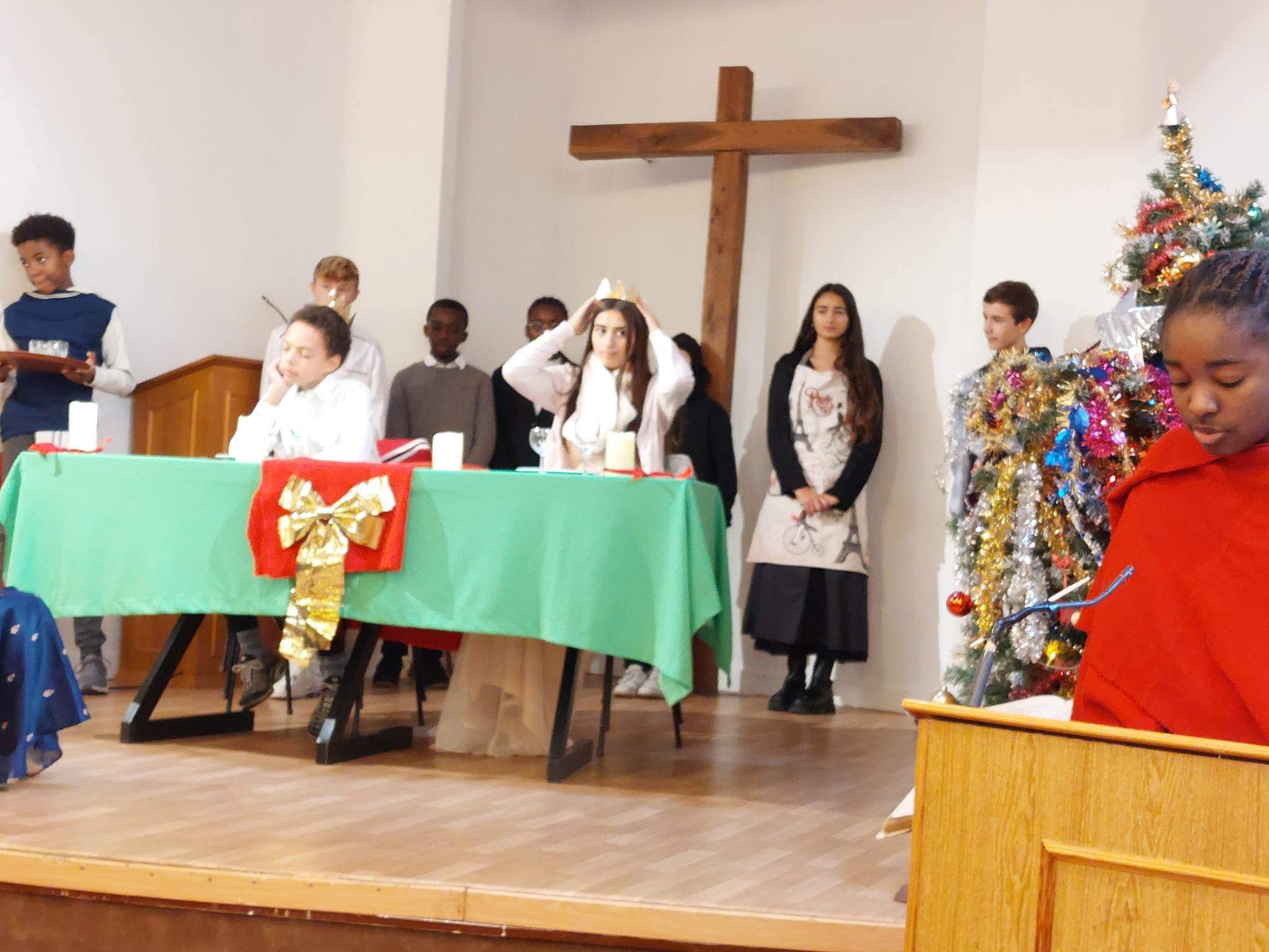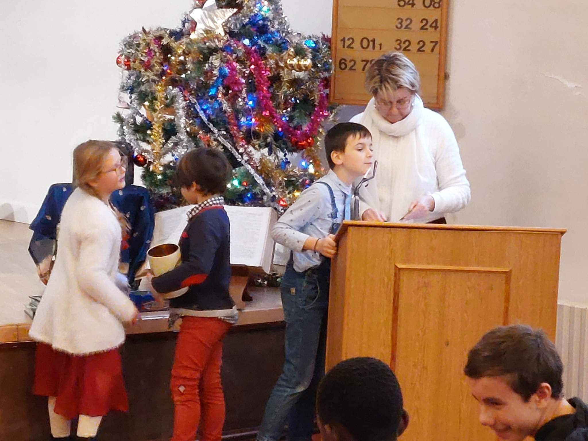 Photos prises lors de l'animation du culte de Noël par l'école biblique et les catégumènes